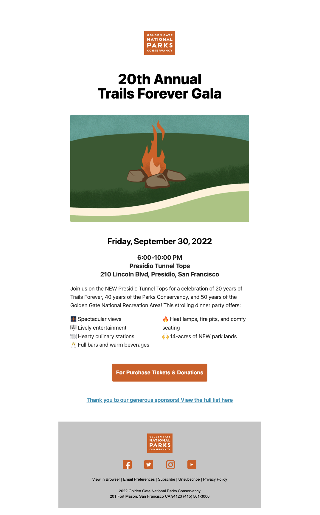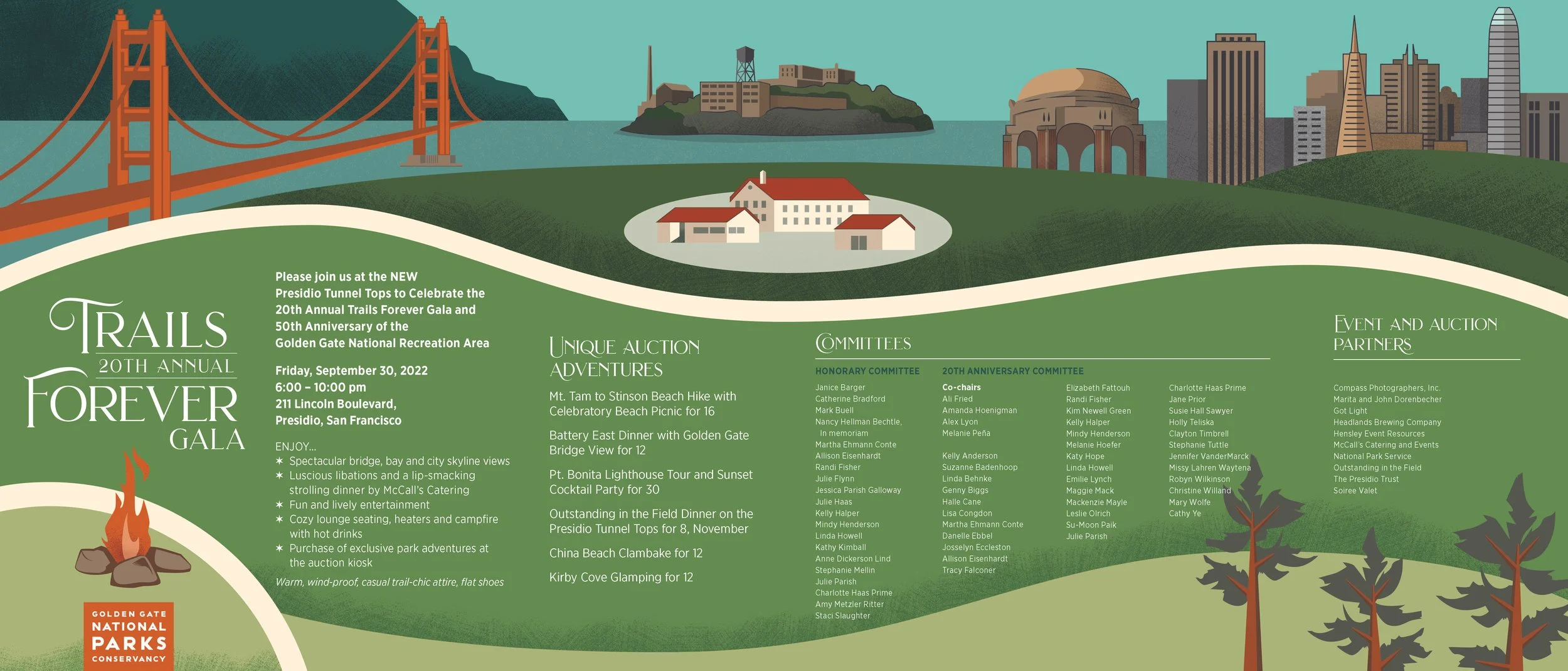 My role: worked with the special events team to conceptualize, design, and illustrate all visualize assets associated with annual fundraising gala, Trails Forever Dinner. Below are select images for the event, but not the entirety of deliverables associated with Trails Forever Dinner. Design deliverables included print invitation, invite envelope, email newsletter, event signage, and auction presentation.
